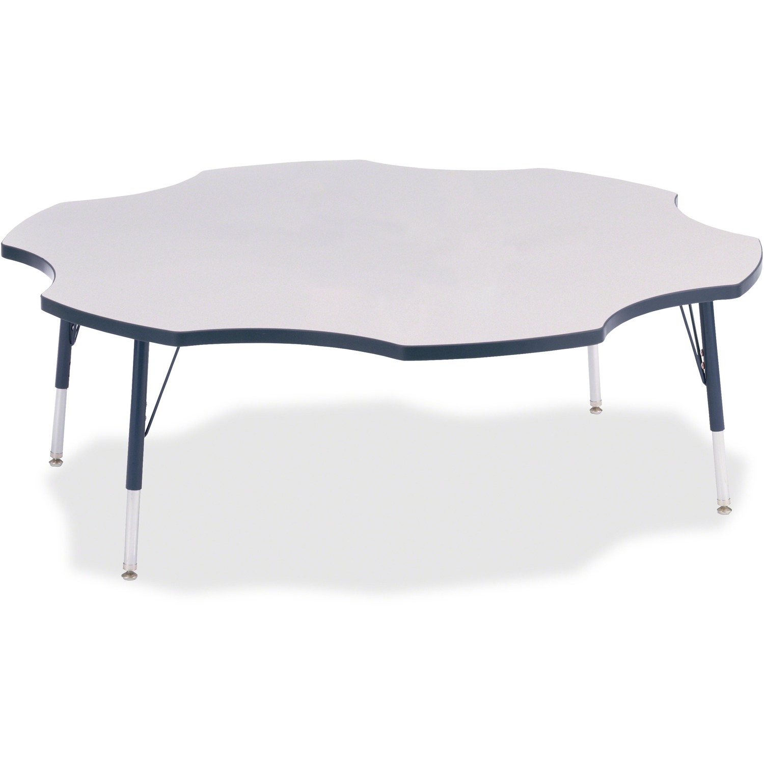 This six-leaf activity table provides the perfect seating arrangement for up to six children. Durable laminate features an easy-to-clean surface. TRUEdge is permanently thermo-fused to the edges to prevent chipping. Extra-safe, dual-screw steel legs allow you to easily adjust the height of the table. Powder-coated, adjustable legs can be repositioned in 1" increments to provide maximum comfort for children. Leg guides reduce squeaks, prevent snags and eliminate rusting.
