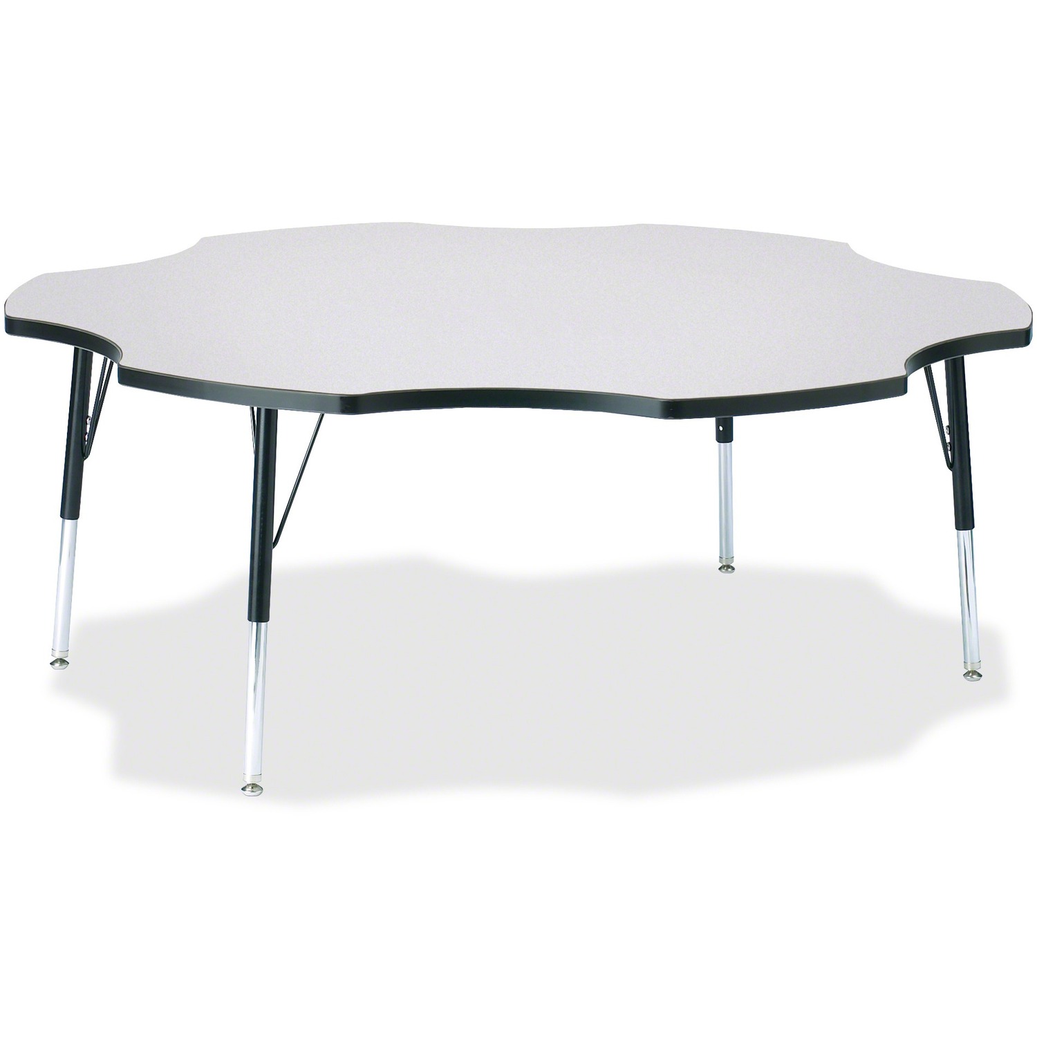 This six-leaf activity table provides the perfect seating arrangement for up to six children. Durable laminate features an easy-to-clean surface. TRUEdge is permanently thermo-fused to the edges to prevent chipping. Extra-safe, dual-screw steel legs allow you to easily adjust the height of the table. Powder-coated, adjustable legs can be repositioned in 1" increments to provide maximum comfort for children. Leg guides reduce squeaks, prevent snags and eliminate rusting.